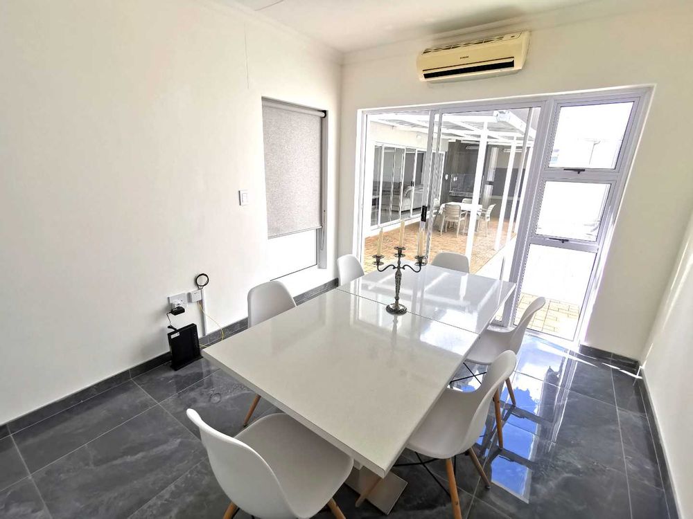 The ground floor has an open plan kitchen with a lounge, a 22m2 covered stoep with a BBQ.