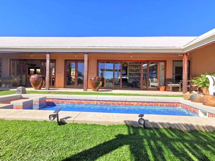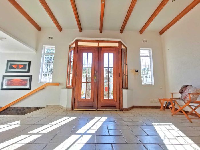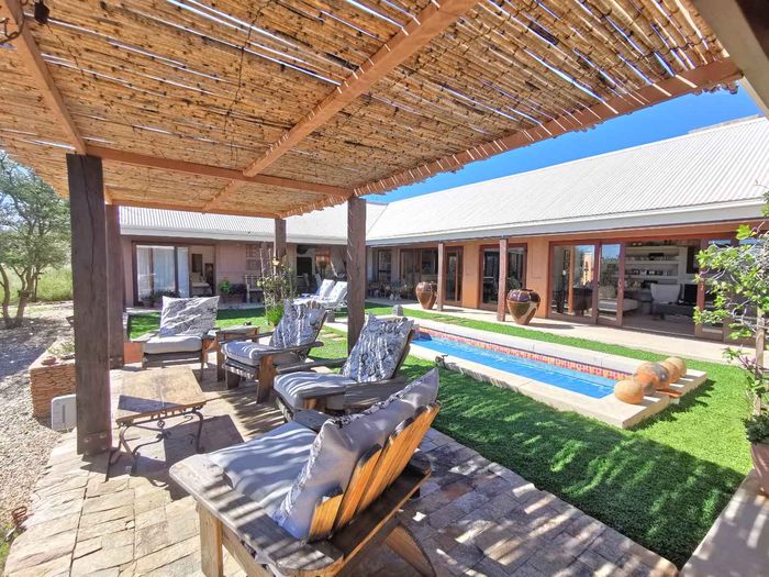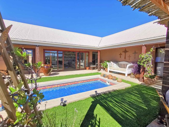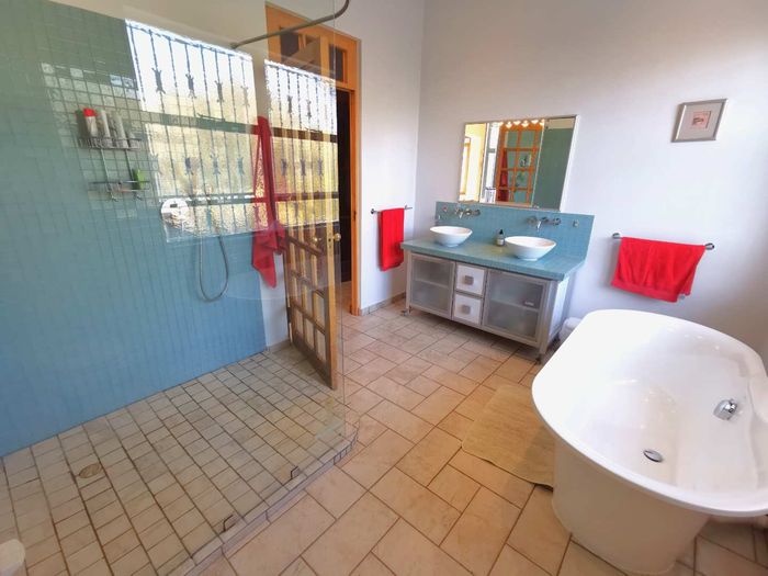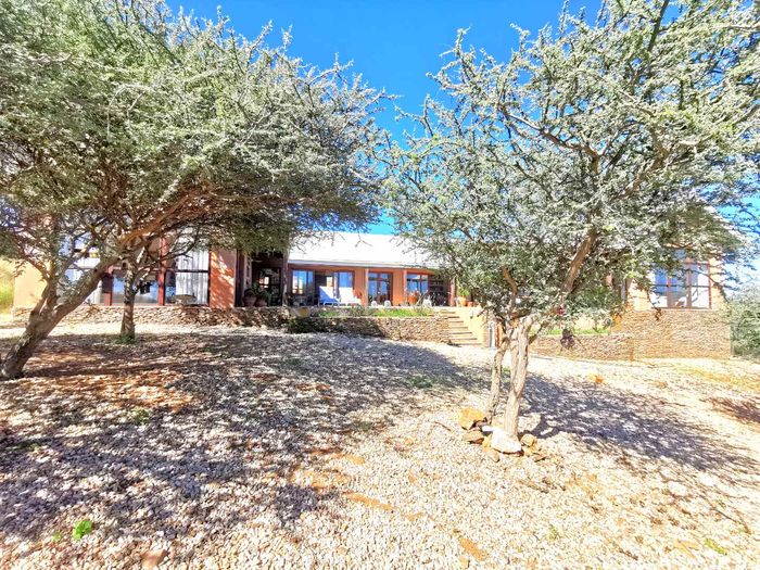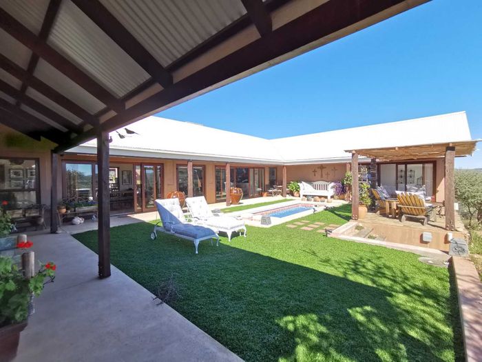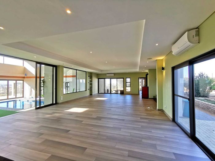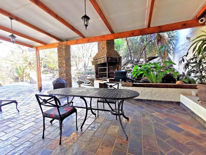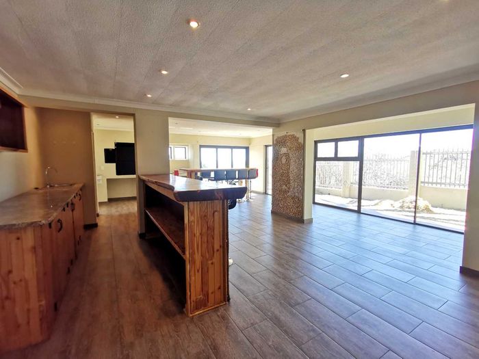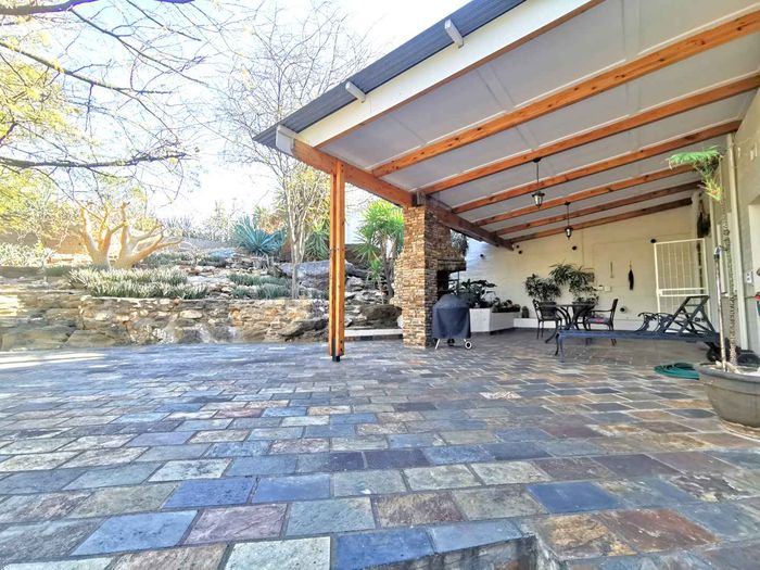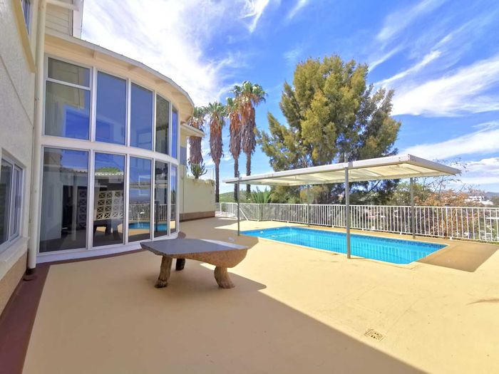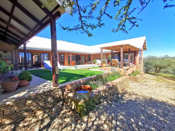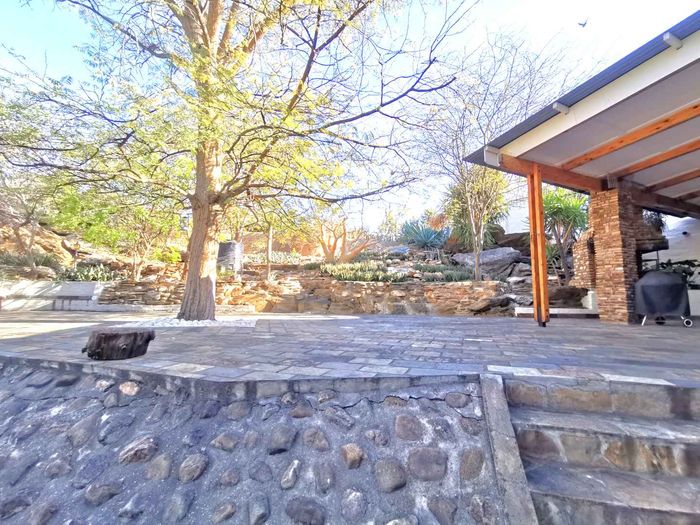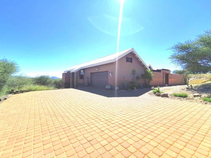 Escape to tranquil Finkenstein Estate, 15 km east of Windhoek, with expansive views and an indoor heated pool; five-bedroom, three-bath home with four-car garage.