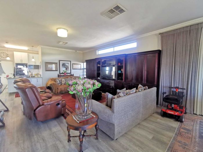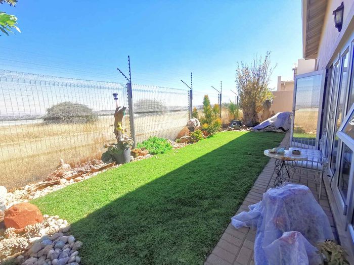 Relaxed retirement living in a secure, upmarket estate 15 minutes from Windhoek, next to Finkenstein Estate — open-plan living with folding doors to BBQ patio; two beds, two baths, double garage.