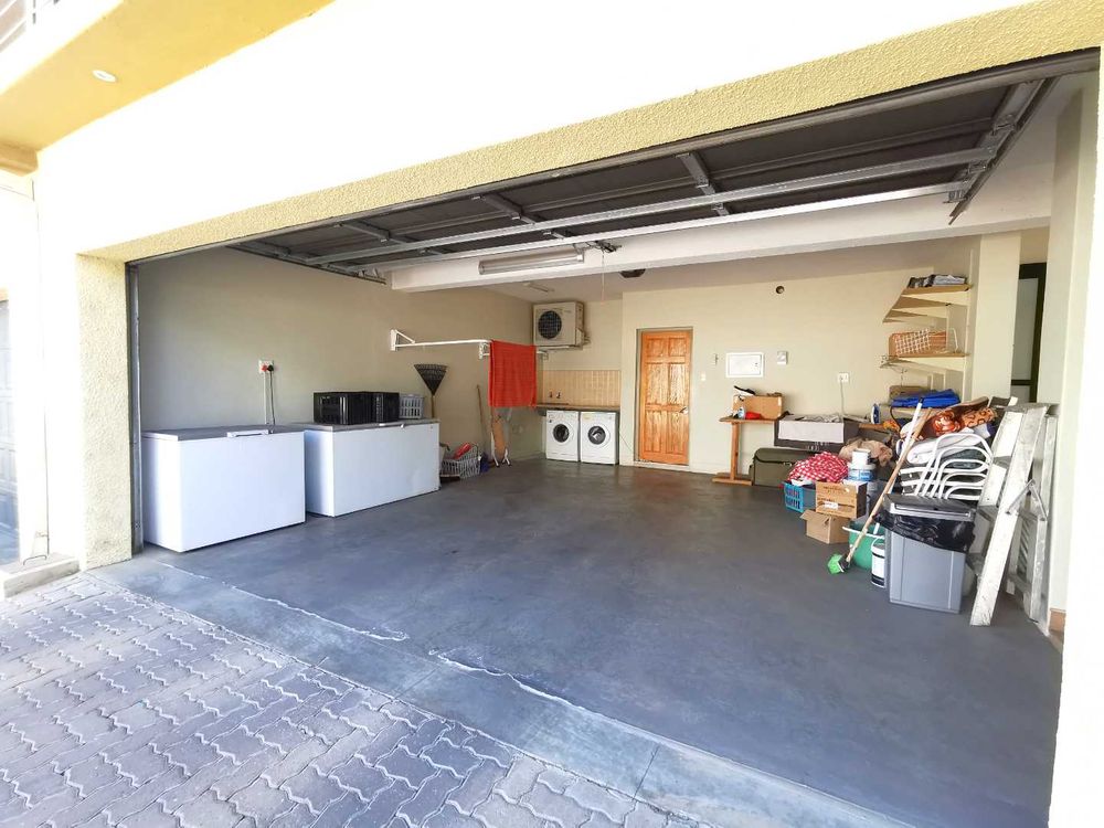 Parking is ample with a massive 44m2 double garage, which also provides a dedicated laundry space for a tumble dryer and washing machine. In addition to the garage, there is extra parking available for two cars directly in front of the unit, along with visitor parking within the complex.