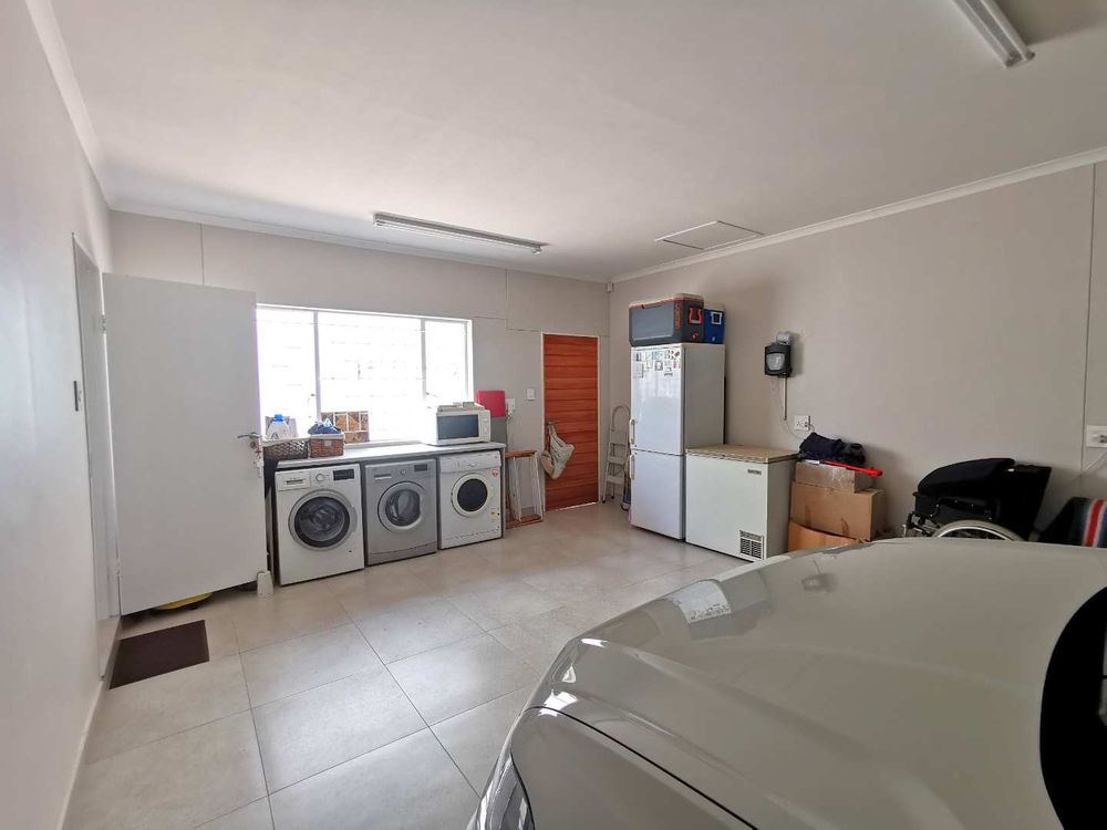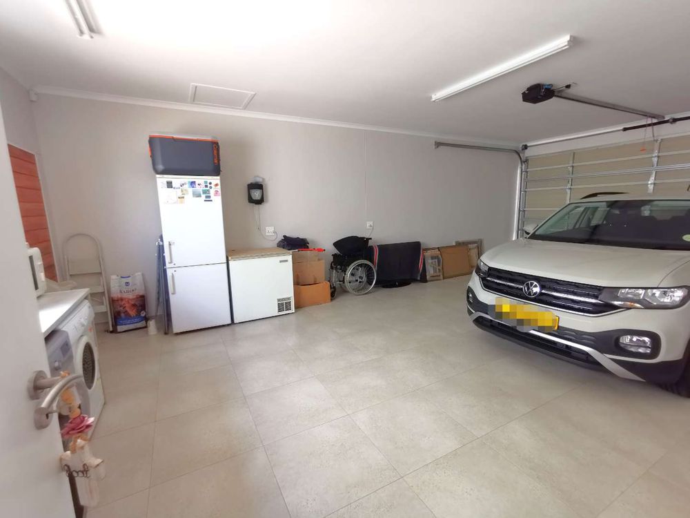 -There are 2 garages, one is a single garage and the other is a bit smaller than a double garage but 2 smaller vehicles could easily fit in. That bigger garage is situated next to the kitchen/scullery and offers a laundry corner with space fora tumble dryer and washing machine. In front of the garages is parking space for at least another 4 cars.