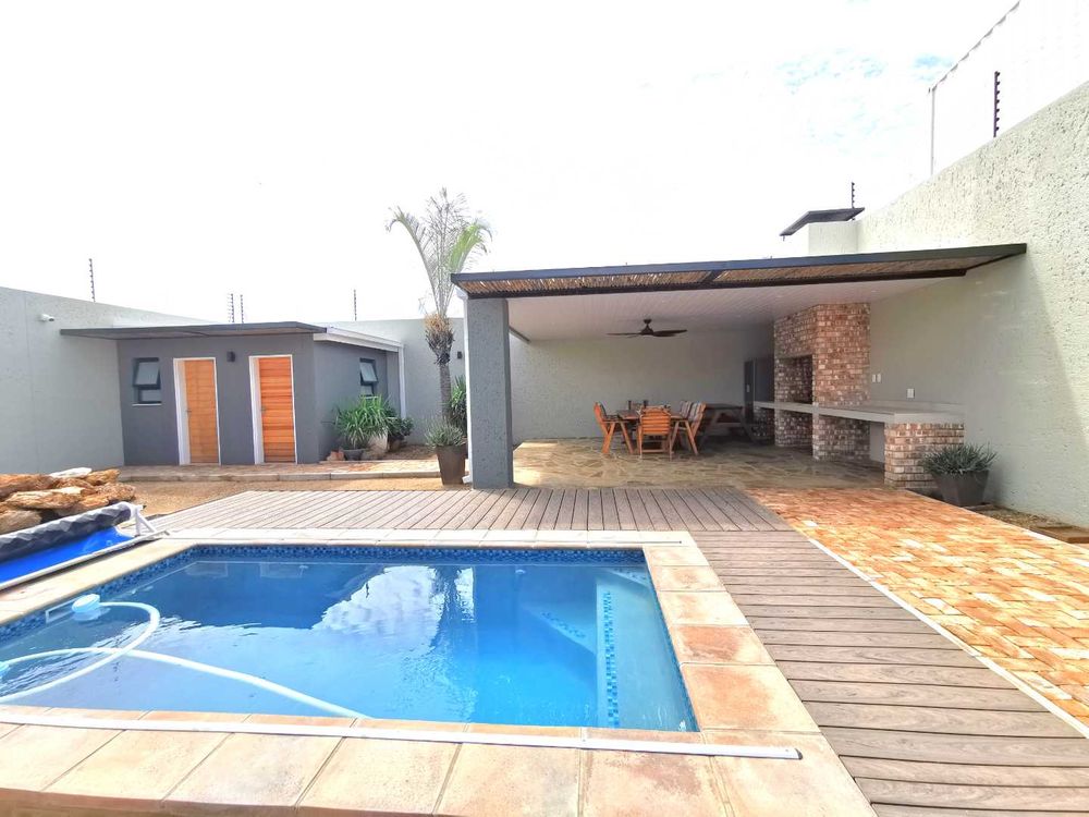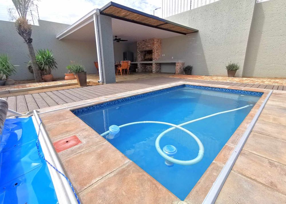 -At the back of the property is a very private entertain-ment area with BBQ and swimming pool, guest toilet and a store room.